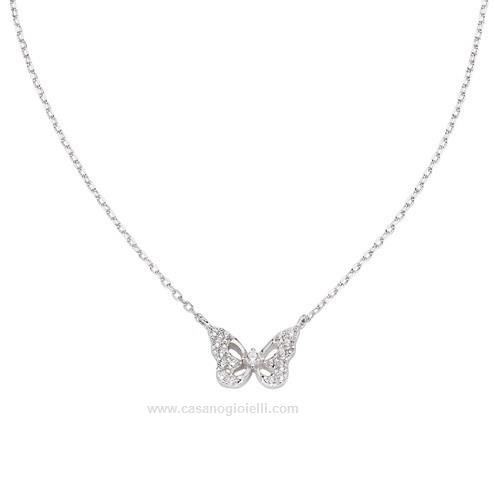 Collana Con Farfalla In Argento 925/°° E Zirconi Bianchi. Lunghezza Collana 40+5 Cm