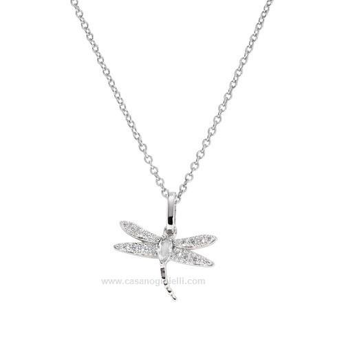 Collana Con Libellula In Argento 925/°° E Zirconi Bianchi. Lunghezza Collana 40+5 Cm.
