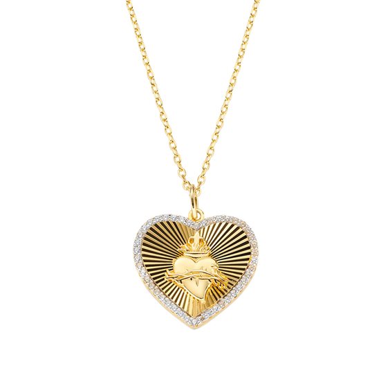 Collana Sacro Cuore con Zirconi Bianchi - Collana in AG925 con zirconi bianchi- Oro - Lungh. 40 + 5 cm