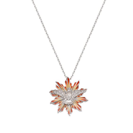 Argento 925‰ smalto e zirconi. Lunghezza 40+5 cm. Pendente Ø 2,5 cm