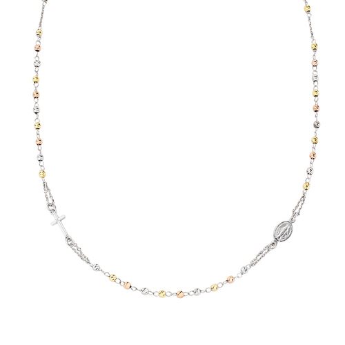 Collana Argento 925 - Grani Rodio/Rosè/Giallo - Lunghezza 50 cm + 2 cm - corredato da shopper, scatola e garanzia