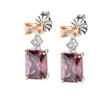 Orecchini in Argento 925 zircone brown champagne e bianco - Rodio