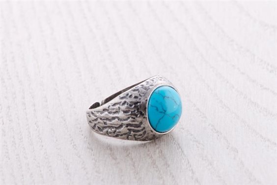 Anello in argento invecchiato 925 e cabochon in pietra dura naturale howlite turchese, aperto e regolabile dalla misura 21, può essere allargato fino alla misura 26. L’effetto invecchiato è realizzato interamente a mano. Creazione artigianale, 100% Made in Italy.