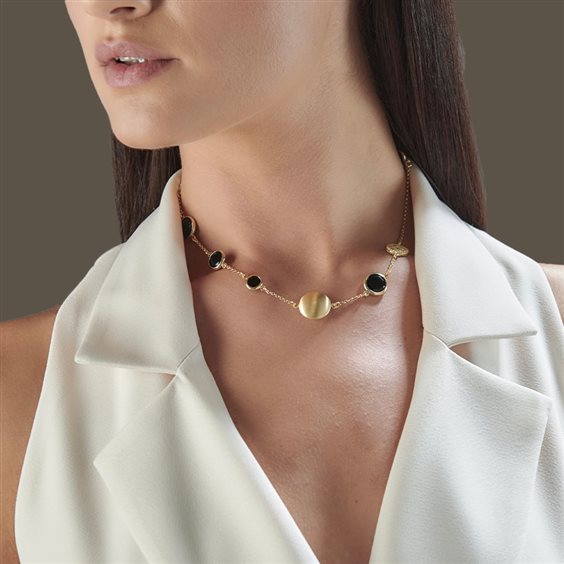 Realizzata interamente a mano, questa creazione Aquaforte nasce dalla passione e dall'esperienza di maestri orafi artigiani. In ogni particolare di questo gioiello in argento 925‰ si riconoscono l'origine italiana e lo stile internazionale. La placcatura in oro giallo 23 carati, rivestita da uno speciale trattamento, è rigorosamente eseguita senza alcun rilascio di nichel e cadmio. La collana è lunga 41 cm + 3 cm di catenella di regolazione