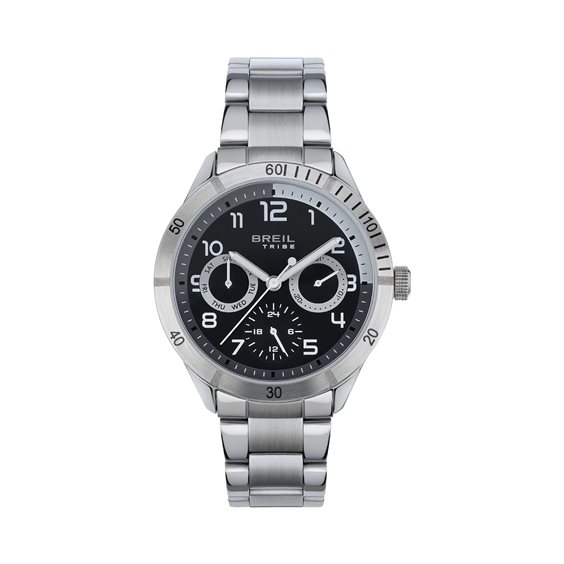 L'orologio multifunzione Mate è perfetto per i giovani sportivi. In questa versione prevale l'accostamento più sobrio di acciaio silver e nero. Cassa e bracciale contrastano infatti con il quadrante black, ricco di dettagli proposti nelle diverse scale di grigio e nero. Un orologio passepartout per ogni occasione.