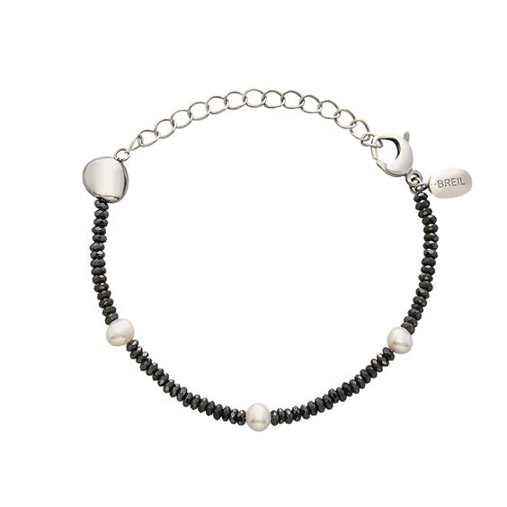 Il bracciale B Rock è in ematite con un piccolo elemento tondeggiante in acciaio lucido, alternato a 3 perle naturali di acqua dolce. Un accessorio delicato, che vive di contrasti e alternanza di spirito rock a tratti più delicati.
