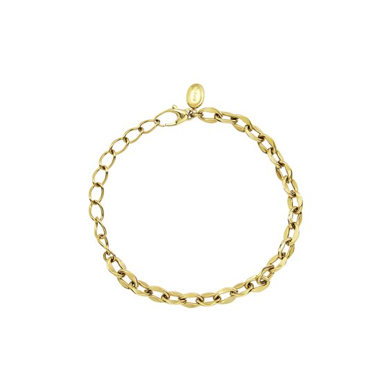 Il bracciale Moor in acciaio lucido color oro esprime eleganza con un design distintivo ispirato alla catena marinara. I suoi elementi, intrecciati con maestria, creano un effetto avvolgente e luminoso che cattura l'attenzione al polso. La fusione di dettagli classici e linee moderne conferisce al bracciale un’eleganza versatile e senza tempo.