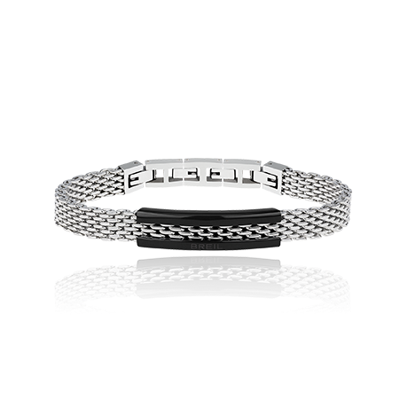 bracciale in acciaio, misura regolabile togliendo maglie. barretta centrale in IP lucido nero.