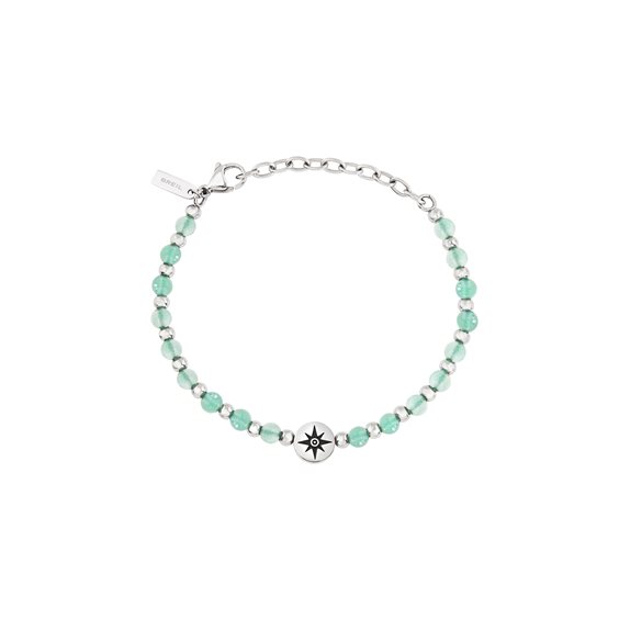 Il bracciale Sound Wave è animato da una forte ispirazione marinara. Piccole sfere in acciaio lucido e di avventurina - pietra naturale portafortuna, che apporta successo, prosperità e ricchezza, allegria e salute - si alternano e creano un filo che decora il polso, arricchito da un elemento centrale in acciaio lucido con incisa una rosa dei venti. Super cool se indossato da solo, mostra ancora più carattere se abbinato ad altri bracciali della stessa collezione. La chiusura regolabile permette di modificare facilmente la misura del bracciale.