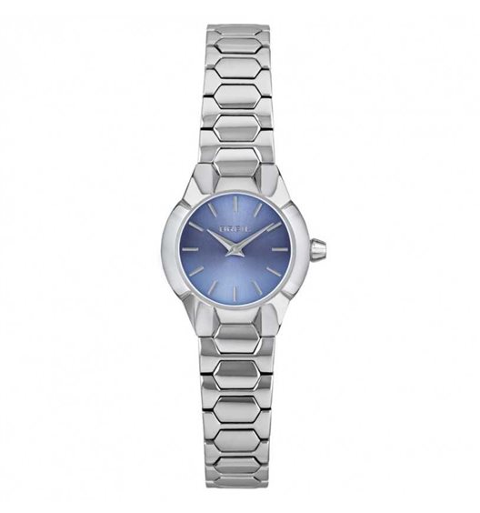 Orologio da donna con movimento al quarzo TMI VJ20 e funzioni di solo tempo. Cassa rotonda in acciaio inox dal diametro di 24 mm e spessore di 5,8 mm. Quadrante analogico sunray blu con indici a bastoni. Cinturino in acciaio anallergico; chiusura con pulsanti. Resistente all'acqua fino a 50 metri di profondità. Appartiene alla collezione New One.
