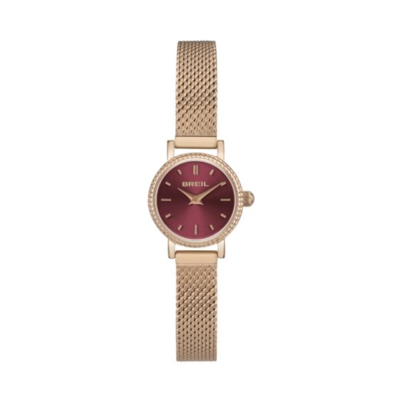 L'orologio da donna Darling è un piccolo gioiellino dal sapore vintage realizzato in acciaio IP rose. La cassa misura solo 18 mm e si ispira ai modelli vintage del passato. Arricchita dai minuscoli cristalli sulla lunetta è abbinata a un bracciale sottile e flessuoso in maglia milanese. il quadrante rosso rubino dà un tocco in più.