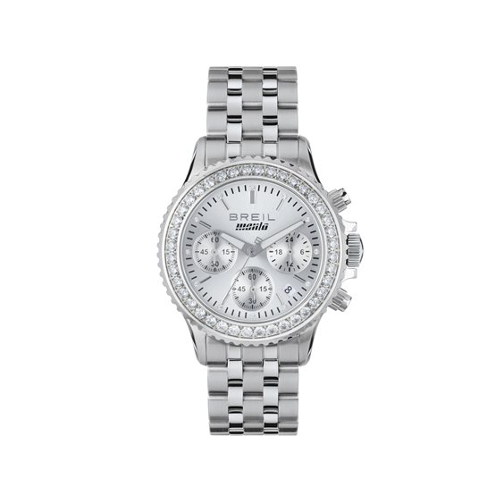 Manta Chrono Lady è l'emblema del glamour e dell'eleganza, pensato per la donna moderna che cerca un orologio dalle alte performance che al contempo sappia distinguersi attraverso uno stile femminile e ricercato. La cassa in acciaio con finitura bilux misura 36,5 mm ospita un quadrante silver con effetto sunray. La lunetta, impreziosita da 43 scintillanti cubic zirconia, aggiunge un tocco affascinante e di tendenza. I 12 cubic zirconia agli indici e le sfere con tecnologia luminescente di alta qualità garantiscono una leggibilità perfetta e un look sempre brillante. Il bracciale in acciaio a 5 maglie con finitura bilux aggiunge ulteriore classe, completato dalla chiusura diver con pulsanti e fermaglio di sicurezza. L’orologio offre inoltre un pratico datario e un fondello a vite per una maggiore affidabilità. Con una resistenza all'acqua di 10 ATM, questo orologio è il mix ideale di eleganza e professionalità, grazie alla sua appartenenza alla linea heritage di Breil Manta.