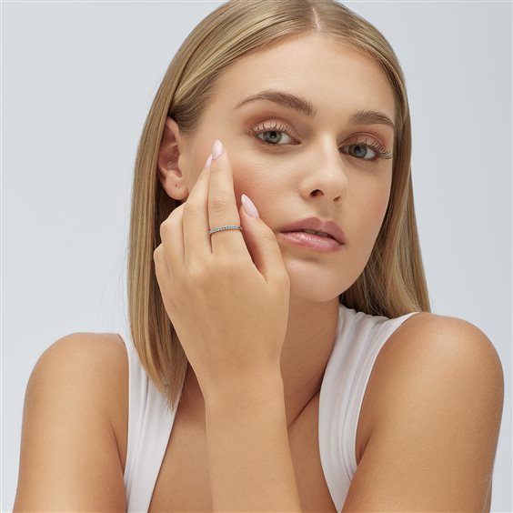 Anello veretta in argento rodiato 925‰ con cubic zirconia colore sapphire.