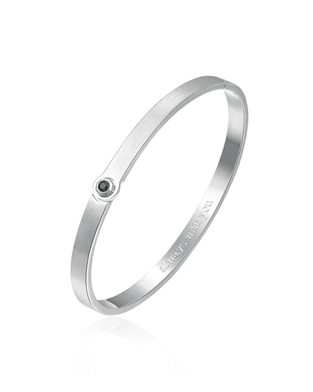 Bracciale rigido della collezione Brosway With You da uomo. Colore: argento e nero. Il gioiello è in acciaio inossidabile 316L impreziosito da un cristallo jet sulla chiusura con incisione interna. E' possibile effettuare un'incisione sul bracciale esterno.