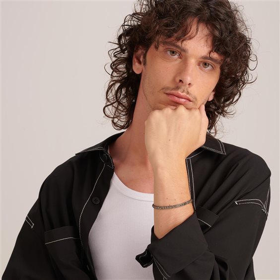 Bracciale semirigido in acciaio 316L, finitura pvd colore rutenio e cristalli neri.