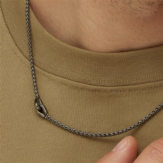 Collana catena spiga lunga in acciaio 316L e finitura pvd colore rutenio.