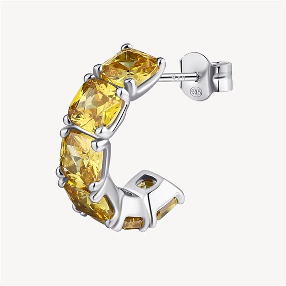 Orecchino singolo a cerchietto in argento rodiato 925‰ con cushion cubic zirconia colore golden yellow.