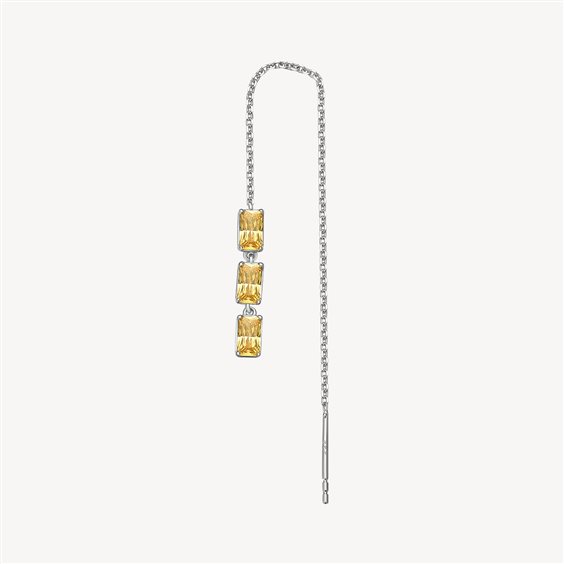 Orecchino singolo saliscendi in argento rodiato 925‰ con baguette cubic zirconia colore golden yellow.