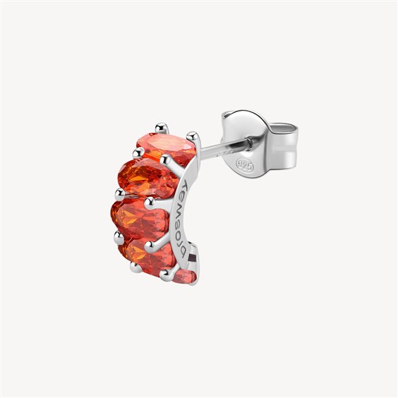 Orecchino singolo a cerchietto in argento rodiato 925‰ con oval cubic zirconia colore orange.
