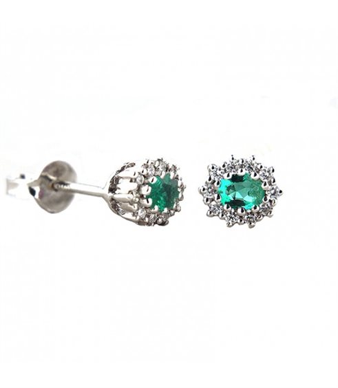 Orecchini da donna in oro bianco con smeraldi centrali da 0,80 ct e diamanti laterali da 0,62 ct Colore G purezza S.