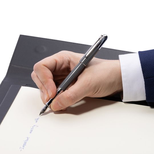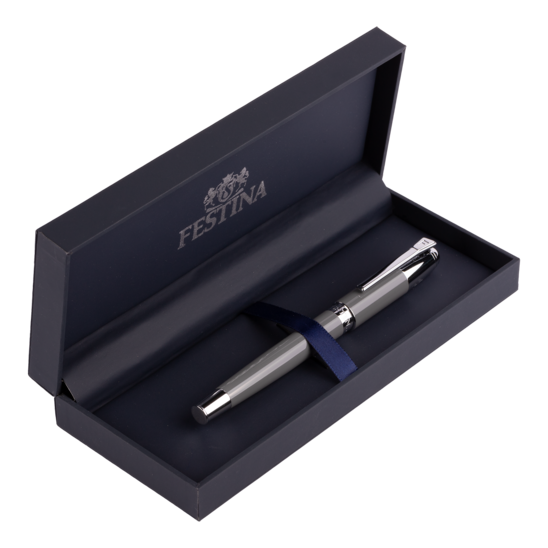 Penna stilografica Festina in ottone cromato e grigio. Misura cm 13,5, peso gr 36,7. Possibilità di piccola incisione. IN CASO DI INCISIONE NON SARA' POSSIBILE IL RESO