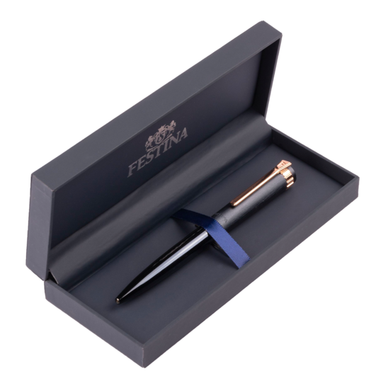 Penna a sfera Festina in blu e oro rosa, con una texture liscia e dettagli squisiti ispirati al design unico degli orologi della collezione Prestige. Più che uno strumento di scrittura, questa penna a sfera ha un design elegante e delicato.