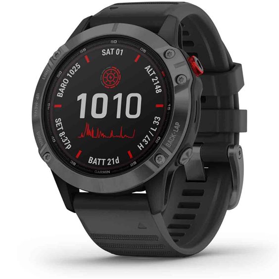 LA LUCE DEL SOLE DIVENTA ENERGIA Grazie all'innovativa lente con ricarica solare Power Glass™ e la modalità di gestione power manager, questo smartwatch può garantire un uso prolungato per settimane. PROGETTAZIONE DEDICATA Il design che garantisce robustezza e allo stesso tempo fascino, comprende un ampio display da 1,3 pollici. E' studiato per rispettare gli standard militari USA di resistenza termica, agli urti e all'acqua. MATERIALI PREMIUM Indossa il modello in base al tuo look e stile di vita grazie alle varie soluzioni di lunette in titanio, acciaio inossidabile o con rivestimento DLC. APP PER LO SPORT Utilizza profili attività precaricati per trail running, nuoto, corsa, ciclismo, escursioni, canottaggio, sci, golf, surf, arrampicata indoor e molto altro ancora. SCI ALPINISMO Resta informato quando ti trovi sulla neve. Questo profilo precaricato è in grado di distinguere la fase di ascesa da quella di discesa, mostrando così i dati in modo automatico e analizzabili in modo analitico. DINAMICHE MTB Tieni traccia dei dettagli di ogni uscita con le metriche dedicate alla mountain bike e alle misurazioni specializzate del grit e del flow che valutano la difficoltà del sentiero e la fluidità della discesa. Tutto questo ti permette di avere un punteggio che diventerà la tua prossima sfida. FUNZIONI SURF Preparati a cavalcare l'onda più alta. Compatibile con Surfline Sessions™, fēnix 6 - Pro Solar Edition crea i video di ogni onda che cavalchi davanti a una videocamera Surfline®, così potrai guardarli in seguito e goderti la tua performance. ALLENAMENTI ANIMATI Offre esercizi animati e semplici da seguire per la forza funzionale, il cardio, lo yoga e il Pilates: tutti visualizzabili sullo schermo dell'orologio. Scegli tra gli allenamenti animati precaricati o scarica altri contenuti dalla nostra community online Garmin Connect™. FREQUENZA CARDIACA AL POLSO Guarda i dati della frequenza cardiaca1 o imposta avvisi se il battito risulta troppo alto o troppo basso mentre sei a riposo. Misura l'intensità del tuo cuore durante le attività, anche in acqua. MONITORAGGIO DELL'ENERGIA BODY BATTERY™ Ottimizza le riserve di energia del corpo prendendo in considerazione la variabilità della frequenza cardiaca, lo stress, il sonno e altri dati per sapere quando sei pronto per l'attività o quando hai bisogno di riposare. MONITORAGGIO DEL SONNO Ottieni un'analisi completa delle fasi leggere, profonde e REM del sonno, con il sensore di monitoraggio della saturazione Pulse Ox2 e dei dati sulla respirazione. Questi dati vengono visualizzati grazie a un widget dedicato che include il valore di stress quotidiano e altre informazioni. RILEVAMENTO DELL'IDRATAZIONE Registra la quantità di liquidi assunti durante il giorno per aiutarti a rimanere idratato. Quando l'obiettivo automatico di idratazione è attivato, vedrai anche la perdita di acqua stimata dopo un'attività in modo che l'obiettivo venga regolato di conseguenza. METRICHE DELLE PRESTAZIONI Visualizza metriche dedicate all'allenamento che includono dinamiche di corsa, tempi di recupero e molto altro1. È possibile stimare il valore del VO2 max calcolato anche in base alla temperatura e all'altitudine. TECNOLOGIA PACEPRO™ PacePro ti aiuta a mantenere il rpasso corretto per raggiungere il tuo obiettivo con indicazioni dinamiche basate sulla pendenza del percorso che stai seguendo. CAMPI DA GOLF Accedi alle mappe CourseView a colori di oltre 41.000 campi da golf internazionali e utilizza le funzioni button targeting e PlaysLike Distance. POWER MANAGER Scopri in che modo diverse impostazioni e sensori influiscono sulla durata della batteria dell'orologio, in modo da poter apportare rapidamente modifiche che possano prolungare ulteriorrmente la durata della batteria. BATTERIA A ENERGIA SOLARE Ottieni fino a 9 giorni di autonomia indoor o fino a 10 giorni con la ricarica solare3 in modalità smartwatch. In modalità GPS, hai 25 ore di autonomia indoor o 28 ore con la ricarica solare4. FUNZIONE CLIMBPRO Utilizza la pianificazione dell'ascesa ClimbPro sui percorsi scaricati. Permette di visualizzare informazioni in tempo reale sulle salite effettuate e quelle che ti attendono, inclusa la pendenza, la distanza e il dislivello. SUPPORTO MULTI-GNSS Accedi a più sistemi satellitari di navigazione (GPS, GLONASS e Galileo) per acquisire la posizione in modo ancora più preciso. SENSORI ABC Percorri il tuo prossimo sentiero con i sensori ABC, incluso un altimetro per i dati di quota, un barometro per monitorare il meteo e una bussola elettronica a tre assi. SENSORE PULSE OX Per l'acclimatazione alla quota o il monitoraggio del sonno, il sensore Pulse Ox2 utilizza led al polso per misurare il livello di saturazione di ossigeno nel sangue. ACCLIMATAMENTO Questo widget mostra la quota corrente, la quota acclimatata, il valore calcolato dal sensore Pulse Ox2 , la frequenza cardiaca1 e la frequenza respiratoria, in modo da poter comprendere immediatamente come il corpo sta reagendo all'altura. RILEVAMENTO DELLA RESPIRAZIONE Scopri il tuo modo di respirare durante il giorno, durante il sonno e durante le attività di respirazione e yoga. MODALITÀ EXPEDITION Fai trekking ancora più a lungo. La modalità Expedition, con campionamento GPS a bassissima potenza, permette l'utilizzo per settimane. MAPPE TOPOACTIVE EUROPE E DELLE PISTE DA SCI Usa le mappe TopoActive Europe per vivere al massimo l'esperienza delle tue avventure. Visualizza i nomi delle piste e le classificazioni di difficoltà di 2.000 impianti sciistici internazionali. NAVIGAZIONE ROUND-TRIP Inserisci la distanza che vuoi percorrere e ottieni percorsi ad anello suggeriti che ti riporteranno al punto di partenza. I percorsi basati sulla popolarità Trendline™ ti aiutano a trovare i migliori sentieri locali e più frequentati. NAVIGAZIONE CON INDICAZIONI DELLE SVOLTE Segui un percorso o un sentiero con l'aiuto delle indicazioni delle svolte con pronuncia dei nomi delle strade che ti