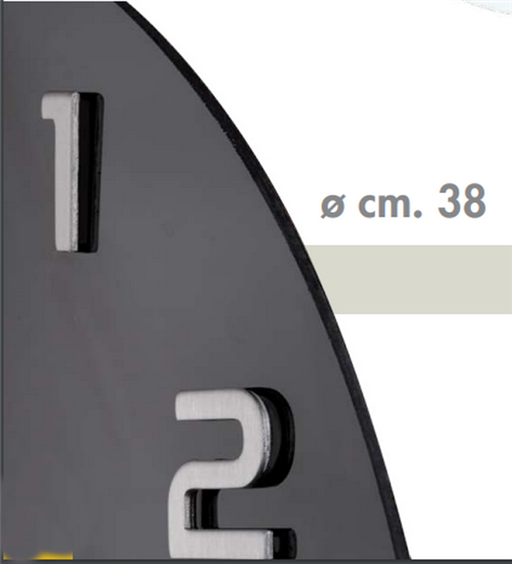 Lowell Orologio da parete al quarzo, cassa in vetro serigrafato con numeri in rilievo. Nero con numeri rosé. Diametro 38 cm