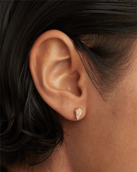 MATERIALE: Argento Sterling FINITURA: Placcatura in oro 18k PIETRA: Zircone DIMENSIONI PIETRA: 8 x 4 mm SISTEMA DI CHIUSURA DEL PIERCING: Speciale retro di sicurezza (rivestito in silicone) e perno più corto (8,5 mm) progettato per la presa e il comfort di tutti i giorni PESO: 0.59g