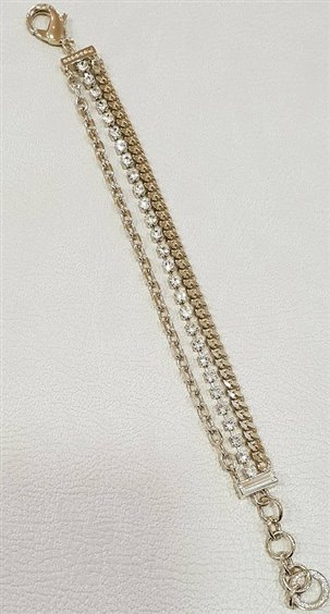BRACCIALE REBECCA DELLA COLLEZIONE TOKIO IN BRONZO CON PVD GIALLO VINTAGE , STRASS BIANCHI LUNGO 19 CM ACCORCIABILE A 17CM