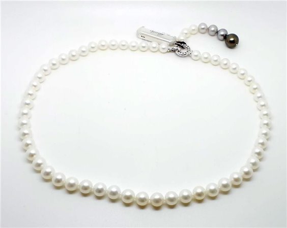 Collana oro bianco 18 kt con perle d'acqua dolce gr 41,84 e diamanti taglio brillante ct 0,39 F-VS