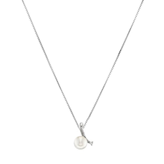 Girocollo in oro bianco 750‰ con 1 perla di dimensione 7-7.5 mm AAA e con 1 diamante bianco qualità G-Si da 0.02 ct con catena veneziana