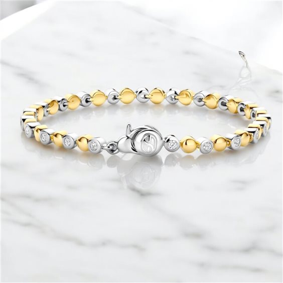 Bracciale in argento 925/000 con placcatura oro giallo e zirconi ,cm 19 .