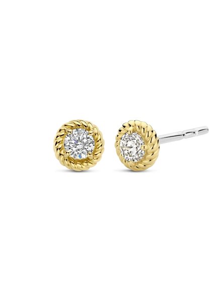 Questi orecchini d'argento placcato oro combinano la ricchezza dell'oro giallo con la brillantezza della zirconia cubica bianca. Due gioielli che donano un tocco di raffinatezza e glamour alle tue orecchie. Sono realizzati in argento sterling 925 di alta qualità e sono placcati oro giallo per un effetto caldo e lussuoso. Le splendenti pietre di zirconia cubica sono montate a mano in un'originale montatura lavorata. Q La chiusura posteriore a farfallina assicura una vestibilità confortevole e sicura, per indossare i tuoi orecchini senza pensieri tutto il tempo che vuoi.