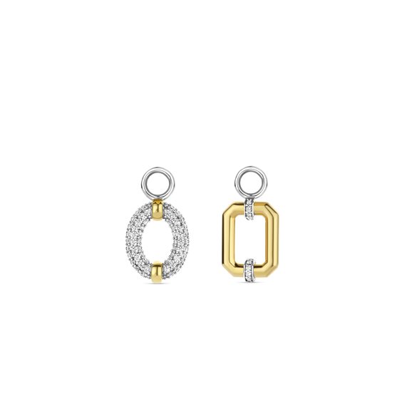 Questi charm per orecchini placcati oro TI SENTO - Milano 9260ZY colpiscono per le due raffinate forme asimmetriche. Un charm è rettangolare ed è placcato oro giallo con dettagli di pavé; l'altro charm ha una forma ovale ed è impreziosito dal pavé di pietre di zirconia cubica bianca con dettagli placcati oro. Entrambi i charm sono realizzati in argento sterling 925 di alta qualità. Decora le tue orecchie con queste originali bellezze. Questi charm di gran classe sono totalmente privi di nickel e ipoallergenici. Il TI SENTO - Milano Pendenti per orecchini 9260ZY è realizzato in Argento sterling color oro. Questi charms per orecchini sono di colore Zircone bianco con placcatura d'oro giallo. Ogni gioiello TI SENTO - Milano viene confezionato con amore e infinita cura in un bellissimo