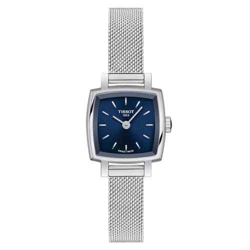 Tissot Lovely Square. Questa meravigliosa collezione esprime l'essenza stessa della classe grazie al piccolo formato , discreto ma assolutamente splendido e alla cassa femminile. Orologio Solo Tempo.Cassa in acciaio lucida e satinata, dimensioni cassa 20 x 20mm. spessore 7.1mm. corpo bracciale 9mm. Movimento al quarzo Swiss Made ETA 901.001 ore e minuti. Vetro zaffiro antigraffio. Quadrante blù , indici e lancette lucide. Bracciale maglia Milano regolabile in acciaio, chiusura gioiello. Impermeabile 3 bar(3 atm).Peso 28 grammi. Libretto istruzioni e scatola originale.Garanzia Internazionale 2 anni.