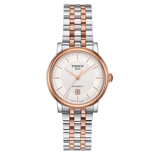 Orologio tissot dall’elegante lunetta a “doppio gadroon”. Il fondello a vista mostra i movimenti Powermatic 80 e 2671 con decorazione “Waves of Time”. La forma arrotondata del bracciale in acciaio, che alterna maglie satinate e lucidide.