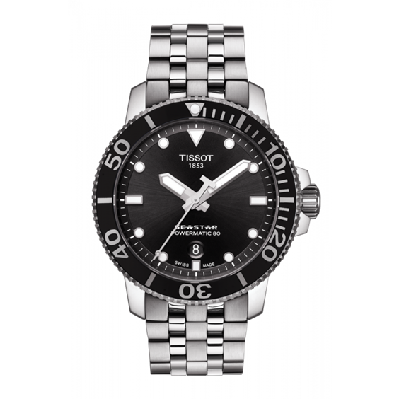L'orologio Tissot Seastar 1000 Automatic è la scelta perfetta per i veri subacquei. Colpisce per le sue elevate prestazioni fino a una pressione di 30 bar (300 m / 1000 ft). Cassa in acciaio inossidabile 316 L opaca e lucida, lunetta subacquea unidirezionale in ceramica nera , fondello e corona a vite , fondello a vista. Questo orologio è dotato di movimento Swiss Made Automatico Powermatic 80 ( riserva di carica 80 ore ).Vetro zaffiro antigraffio . Quadrante nero con indici e lancette luminescenti , data ad ore 6, Bracciale regolabile in acciaio inossidabile 316L lucido ed opaco con chiusura di sicurezza ed estensione subacquea. Scatola e libretto istruzioni originale con Garanzia Internazionale Tissot di 2 anni.