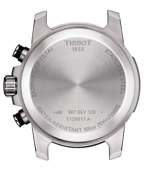 Orologio Solo Tempo Uomo Tissot Supersport Chrono. Referenza: T1256171105100 Orologio Solo Tempo Da Uomo Di Tissot Della Collezione T-Sport Della Linea Supersport Chrono. Nome Orologio: Tissot Supersport Chrono. Orologio Con Cassa In Acciaio 316 L Di Forma Rotonda Di 45.50Mm X 45.50 Mm Con Spessore Di 11.92Mm. La Distanza Tra Le Anse È Di 22.00Mm. Peso: 18,8Gr. Orologio Con Lunetta In Alluminio E Vetro Zaffiro Antigraffio. Il Quadrante È Di Colore Nero Con Indici. Il Cinturino È Realizzato In Acciao Inossidabile Di Colore Grigio Con Chiusura Standard Con Sicura Ed Estensione Subacquea. Orologio Impermeabile Fino A 10 Bar (100 Metri/330 Piedi). Il Movimento È Svizzero, Al Quarzo. Modello: Eta G10.212. Orologio Con Energia Quarzo Eol E Batteria Tipo Renata 394. Funzioni: Contatore 30 Minuti E 1/10 Di Secondo, Funzioni Add E Split, Lancetta Cronografo Centrale Dei 60 Secondi, Eol (Indicatore Di Fine Vita Della Batteria). La Referenza È T1256171105100