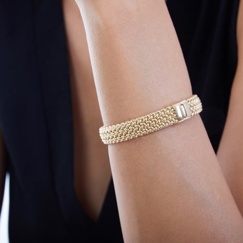 Bracciale da donna in argento dorato con bagno in oro 24k. Maglia Chicco di riso. Un bracciale di moderna raffinatezza. Un'idea regalo preziosa che conquisterà il cuore di chi lo indosserà. Catena morbida.