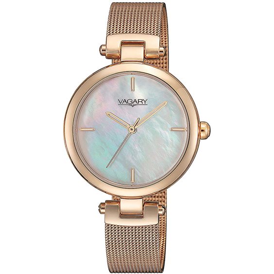 Orologio da donna Vagary Flair Lady Movimento Al quarzo Citizen Caratteristiche Cassa in acciaio rosato. Bracciale acciaio rosato in fine maglia Milano. Vetro minerale. WR 5 bar. Dimensioni Diametro cassa 30 mm