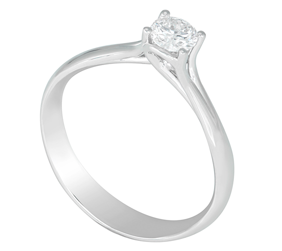 Solitario World Diamond Group da donna in oro bianco 18 kt (750‰) con diamante taglio brillante di carati 0,15 colore G purezza Si1.